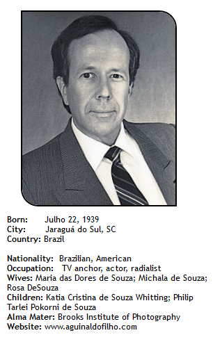 Born in Jaragua do Sul, in Santa Catarina, Brazil, to Aguinaldo José de Souza and Abigail Melchiades de Souza, “Naldo” as he was called at home, was one of 5 children, born to a time when the only home entertainment was the radio. In his home Joinville, he stayed up late at night in his darkroom, scanning the radio waves, (BBC, Voice of America, Radio Moscow, Radio Prague, Swedish Broadcasting Corporation, The Vatican etc.), which sparked his curiosity about the magic of the radio. He then acquired a correspondence radio course degree at the age of 14. Aguinaldo fulfilled his mandatory military service at 18, and afterward moved to Rio de Janeiro, where his broadcasting career began.